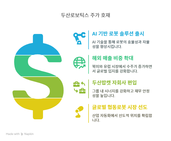 두산로보틱스는 글로벌 협동로봇 시장에서 선도적 위치를 다지고 있다. 2025년 5월 18일 Y REPORT에 따르면, AI와 결합한 협동로봇은 산업 자동화의 리더로 부상하고 있다. 이는 제조, 물류, 헬스케어 등 다양한 분야에서의 수요 증가로 이어진다. 특히, 두산로보틱스의 기술력은 글로벌 제조사와의 협업 가능성을 높이며, 기술 수출과 파트너십 확대를 통해 매출 성장이 기대된다.