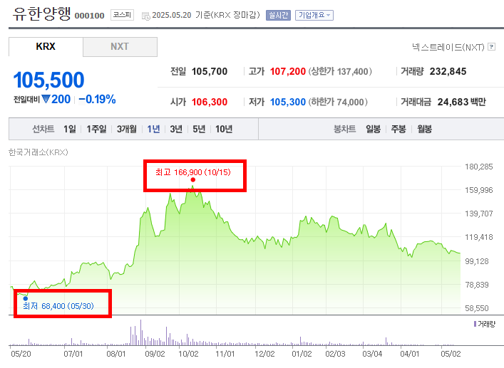 유한양행 주가 52주 변화